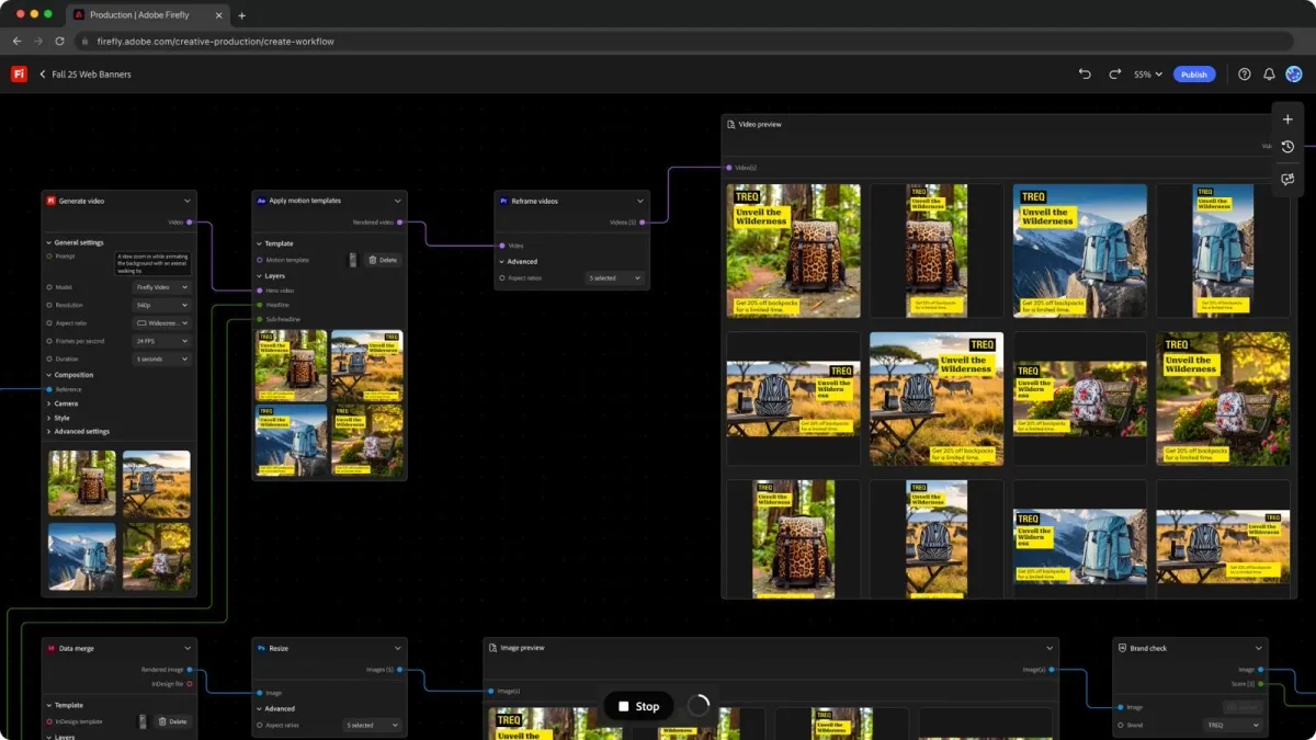 If a brand needs to remove the background from thousands of product photos, colour-grade them, replace a backdrop, add localised text and format the output for multiple regions, Firefly can now handle that in a single automated flow.