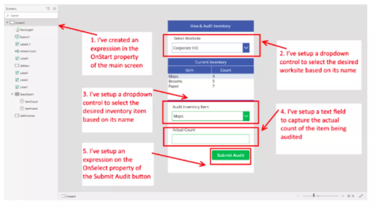 Armed with this Current Inventory view, you can now setup a Power App that displays the Current Inventory and facilitate entry into the Inventory Audit Table.
